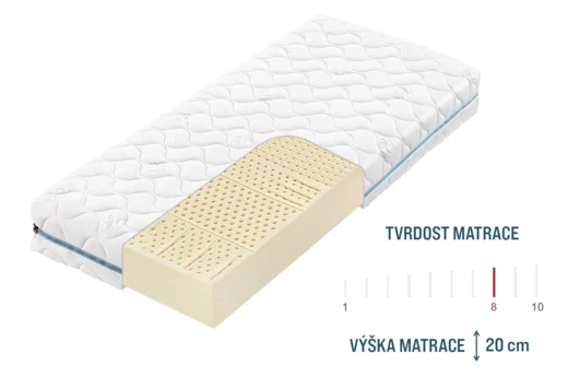 - latex je pružný a odolný materiál, který se dokonale přizpůsobí tvaru těla. Pocitově pevnější jádro poskytuje skvělou oporu, ulevuje od bolesti a díky systému otvorů a otevřené buněčné struktuře zajišťuje dokonalou cirkulaci vzduchu, díky níž matrace zůstává svěží a pohodlná po celý rok