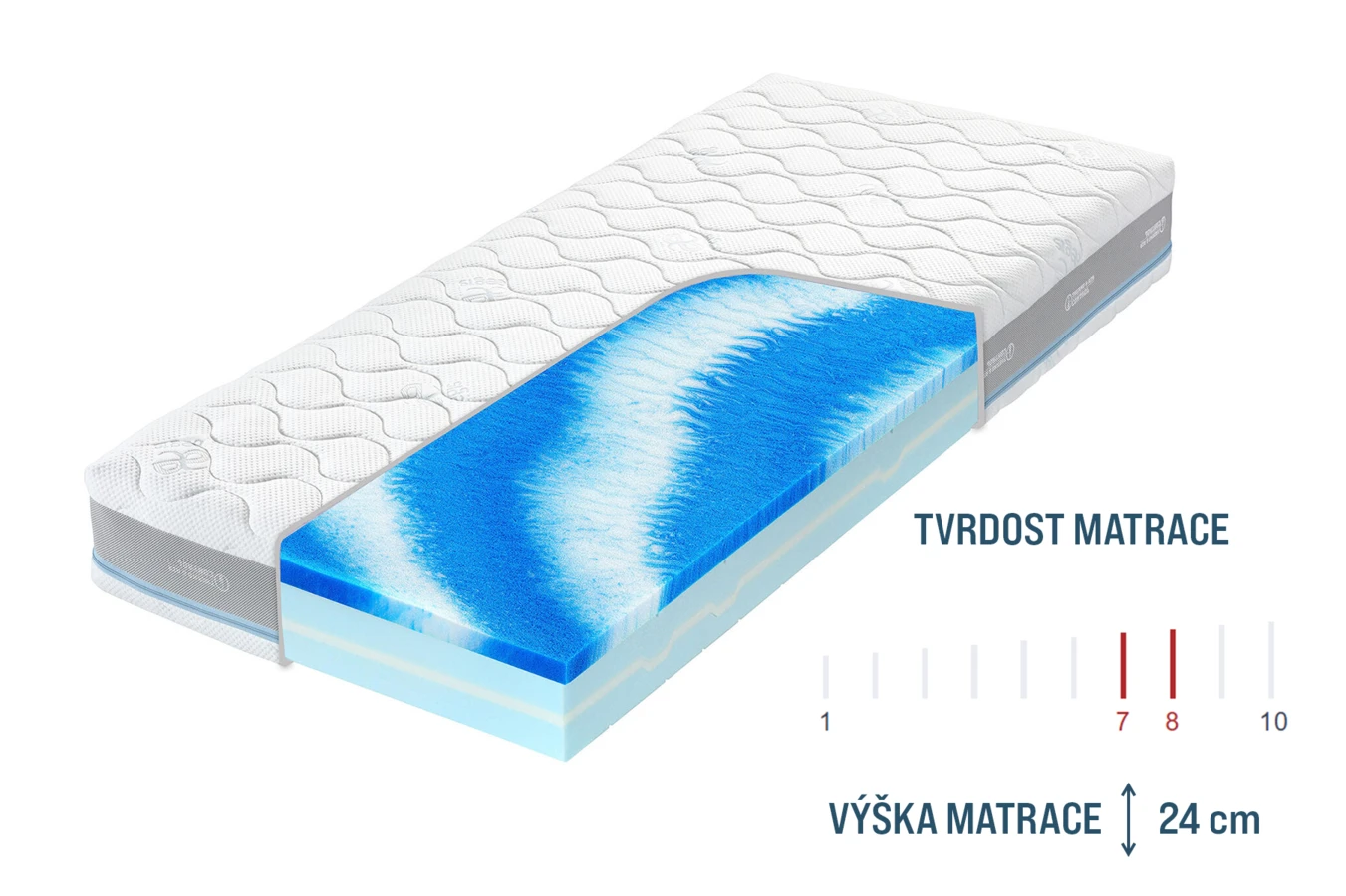 - vysoká elasticita a hustota podobná latexu, dokonalá distribuce tlaku jako u gelových matrací
