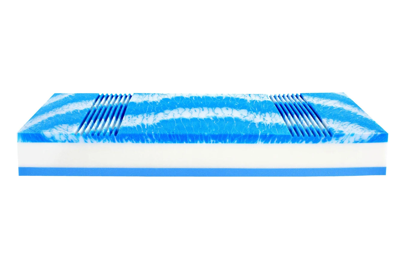 - odolná pěna nejvyšší kvality tvoří masivní vrstvu hybridního materiálu, který je zároveň pružný i poddajný