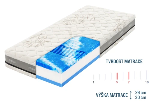 - matrace s paměťovou pěnou a antialergickým potahem s úpravou BAMBOO