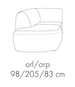 Tento modul je otoman s opěradlem a rohovou částí vpravo, ostatní moduly se k němu připojují zleva.