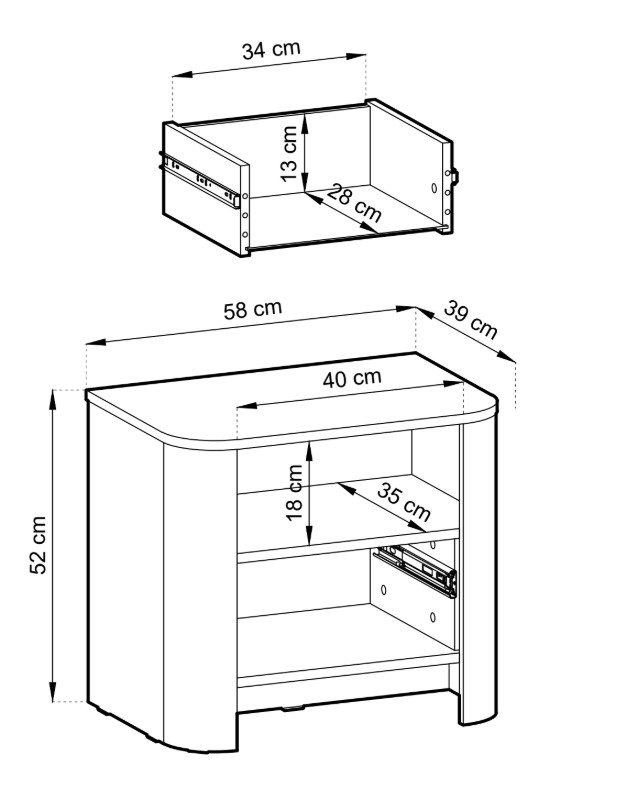 Zásuvka je opatřena bezúchytovým systémem push-to-open a vyhotovena z kvalitního MDF.