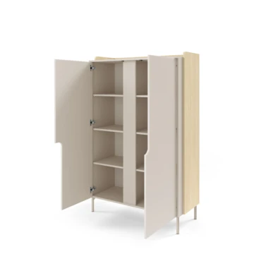 Dvířka jsou zdobeny originálními průřezy, které odhalují rafinované vertikální frézování.