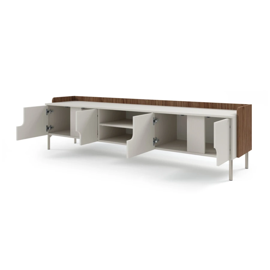 Dvířka jsou zdobeny originálními průřezy, které odhalují rafinované vertikální frézování.