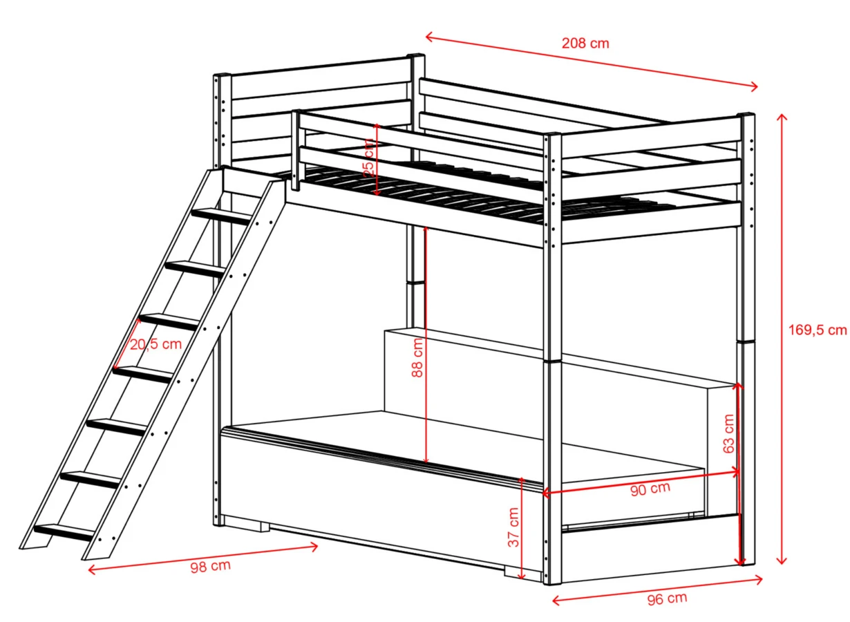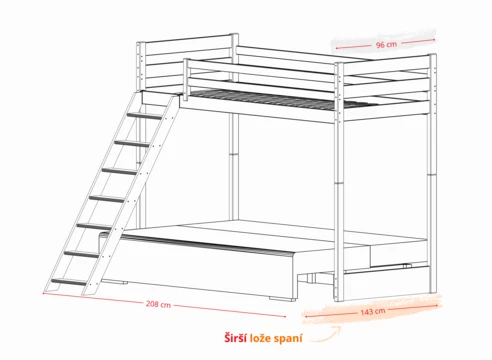 Ochranná zábrana proti pádu zajišťuje bezpečný spánek na horním lůžku.