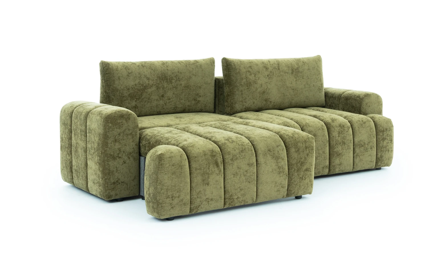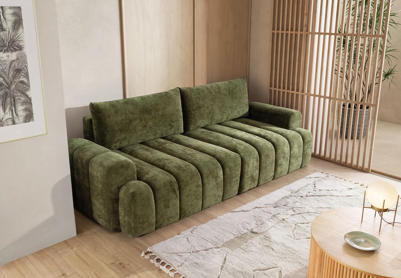Pohovka Anubis je nepřehlédnutelný designový kousek, který okamžitě dodá interiéru charakter. Dominují jí výrazné linie sedáku a zaoblené tvary područek, díky kterým působí moderně, ale zároveň velmi útulně. Hluboké prošívání vytváří luxusní vzhled a pohodlné sedáky lákají k odpočinku. Snadno ji rozložíte na prostorné lůžko, které oceníte při každodenním relaxu i příležitostném přespání. Nechybí ani úložný prostor, kam jednoduše uložíte deky, polštáře nebo další nezbytnosti, které chcete mít po ruce.