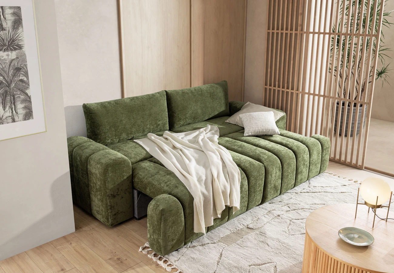 Pohovka je vybavena rozkládací spací plochou, která nabízí místo k přespání.