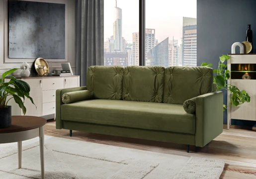Pohovka Coria je spojení elegance, funkčnosti a komfortu. Její decentní, ale výrazný design s ozdobným prošíváním a polštáři ve tvaru válečků dodá interiéru jedinečný charakter. Díky rozkládací funkci snadno vytvoří pohodlné lůžko pro hosty, zatímco prostorný úložný prostor nabízí praktické místo pro ložní prádlo a další textilie. Vysoce elastická výplň sedáků zajišťuje maximální pohodlí při každodenním používání. Coria je ideální volbou pro ty, kteří hledají stylovou a přitom praktickou pohovku do moderního bytu i klasického interiéru.