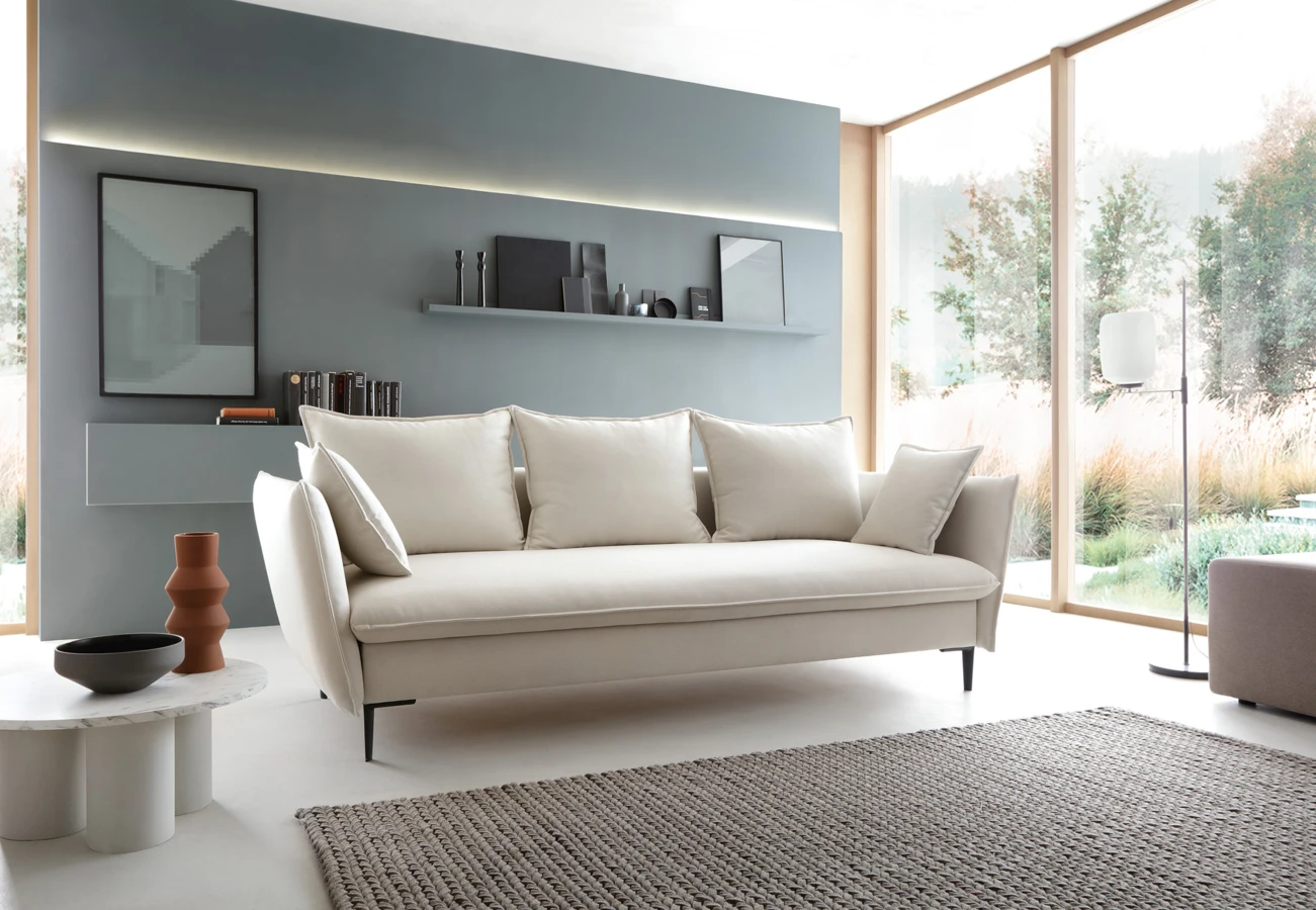 Pohovku lze rozložit pro občasné spaní a nabízí i úložný prostor.