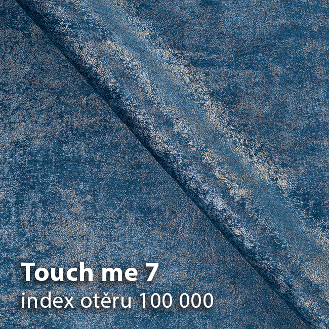 Potah tvoří látka Touch Me 7 v modré barvě se zajímavým vzorem. Prošívání pohovky je ve stejné barvě jako potah.