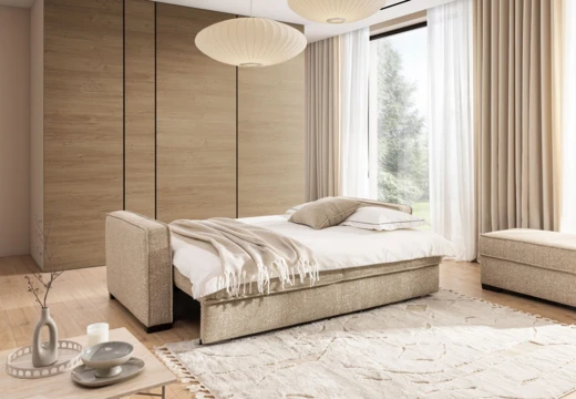 Pohovka disponuje úložným prostorem a rozkládací plochou na spaní.