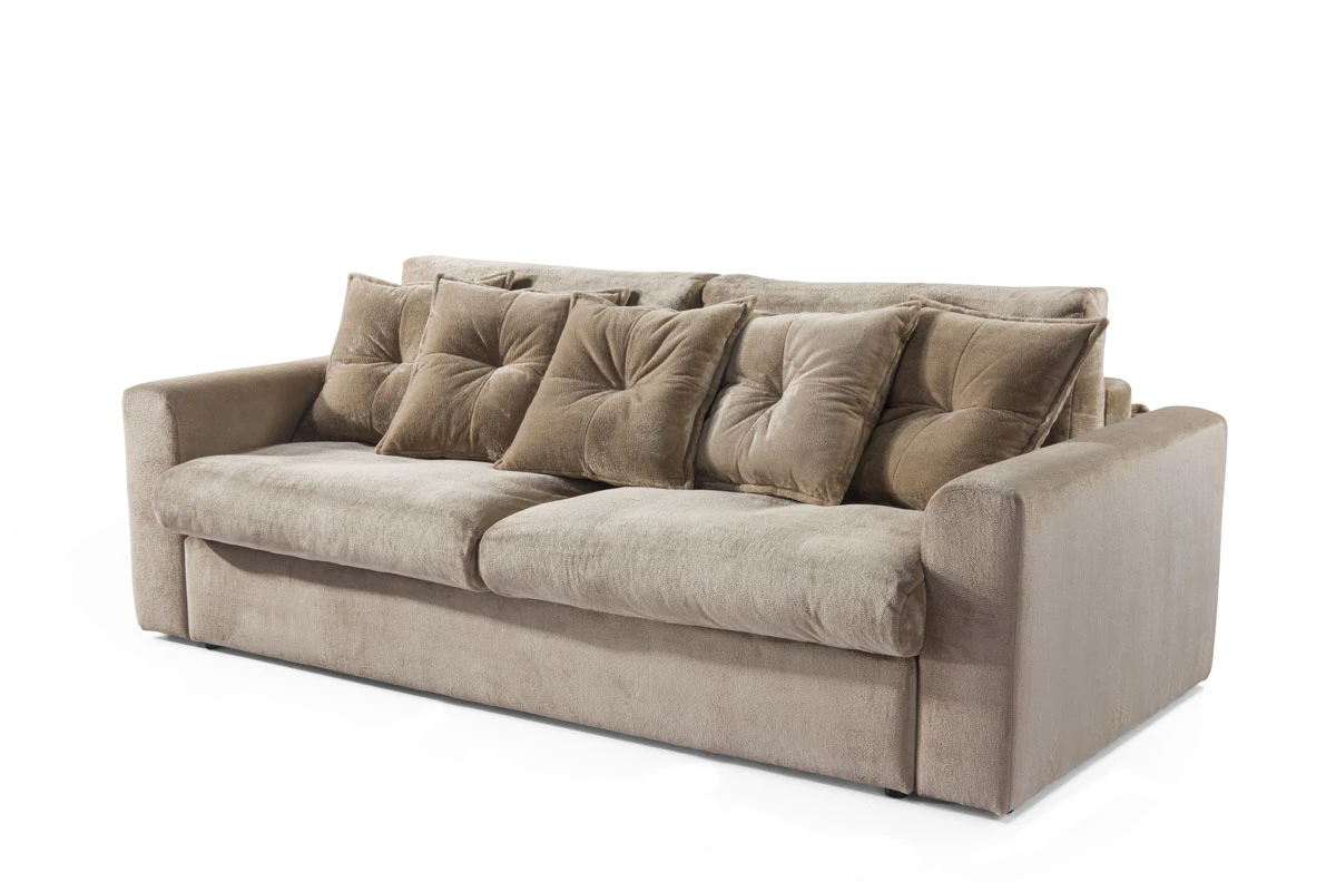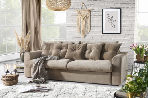 Rozkládací pohovka s úložným prostorem nabízí pohodlné sezení, měkké polštáře a nadčasový design.