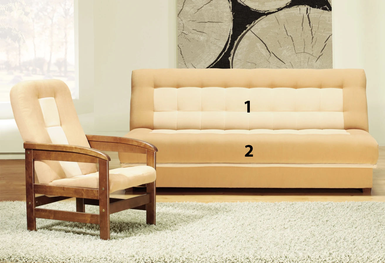 Při volbě látky č.1 na obrázku volte v konfigurátoru Potah a při volbě č. 2 volte Korpus.
