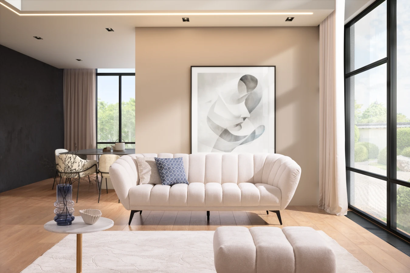 Pohovka Valetti 3 je designový kousek, který okamžitě upoutá pozornost a dodá interiéru jedinečný charakter. Její elegantně zaoblené linie, jemné prošívání a lehká konstrukce na vysokých nožkách vytváří vzdušný a moderní dojem. Nejde ale jen o vzhled. Valetti nabízí i příjemné pohodlí, které oceníte při každodenním odpočinku. Pokud hledáte pohovku, která spojuje styl, originalitu a komfort, Valetti je přesně ta pravá.