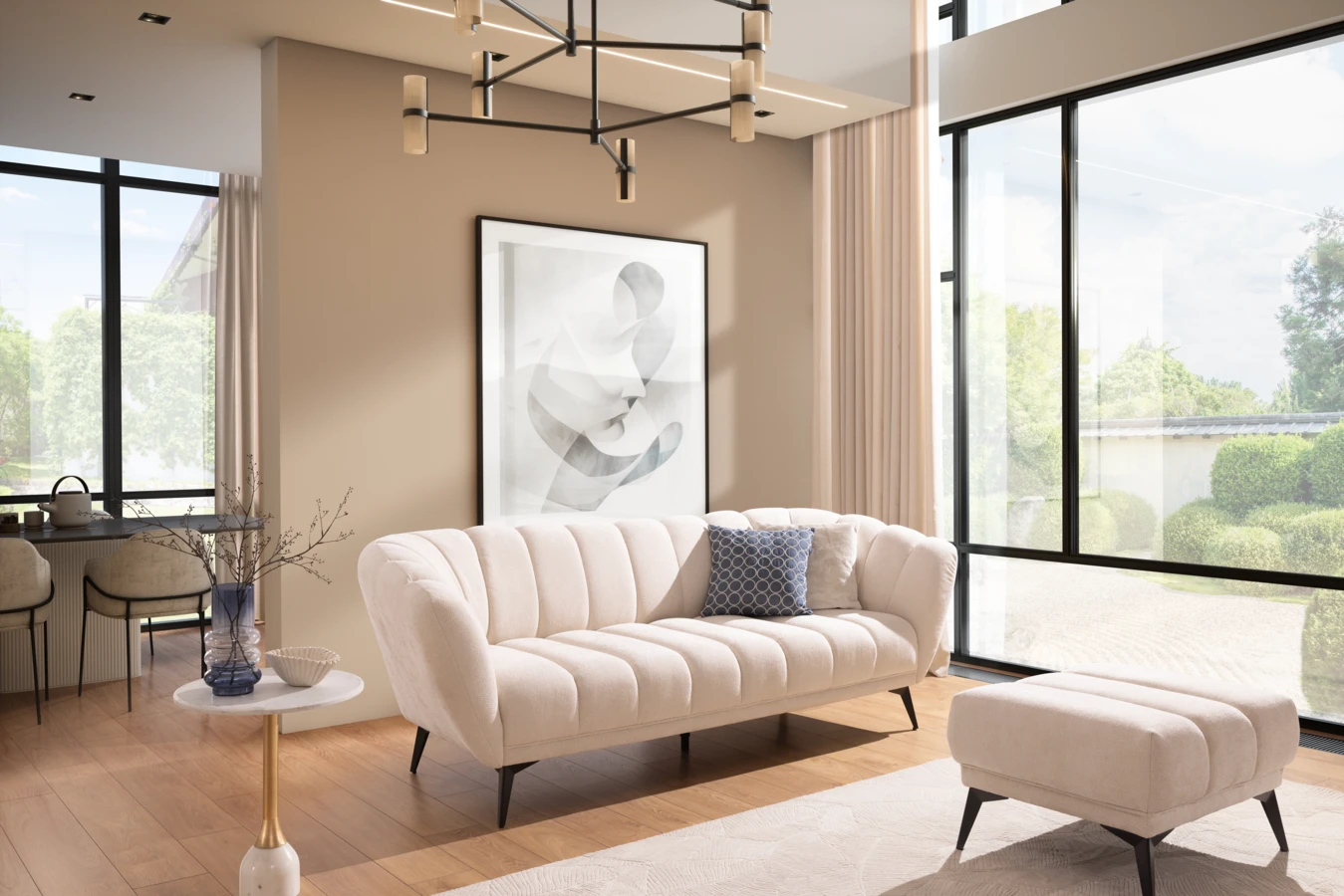 Elegantní třímístná pohovka, která vás okouzlí svým sofistikovaným prošíváním ve stylu glamour.