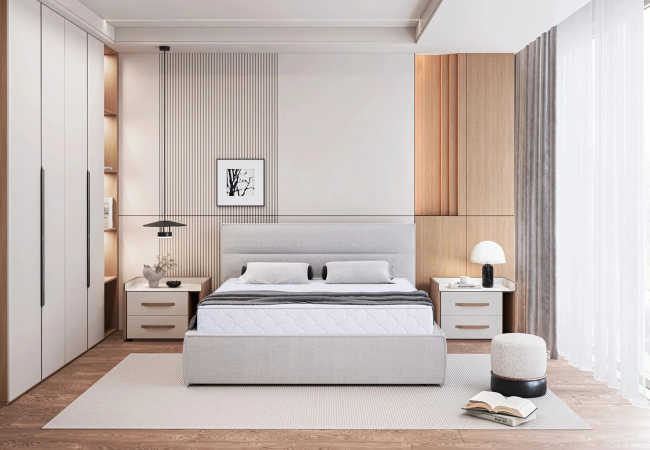 Manželská postel Kelly zaujme na první pohled svou jednoduchou, čistou formou a jemným designovým detailem v podobě jednoho horizontálního prošití na čalouněném čele. Minimalistické linie a vyvážené proporce působí klidně a harmonicky, takže postel snadno zapadne do různých stylů ložnic, od moderních až po nadčasově laděné interiéry. Praktickou výhodou je také velký úložný prostor na lůžkoviny, který využívá celou plochu postele a pomáhá udržet ložnici přehlednou a organizovanou. Kelly je ideální volbou pro ty, kteří hledají kombinaci stylového designu, pohodlí a funkčnosti v jednom elegantním kusu nábytku.