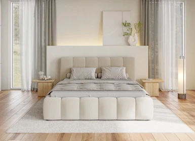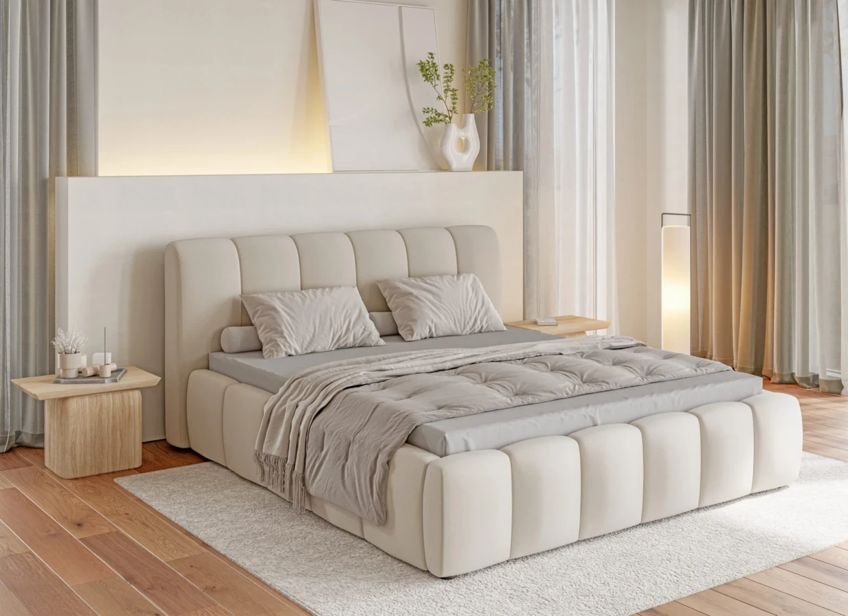Čalouněná postel Lunda zaujme již na první pohled svými jemnými liniemi. Působí velice elegantně a do interiéru vnáší vzácný pocit klidu a pohodlí. Charakteristickým prvkem je vertikální dekorativní prošití na čalouněném čele, které se opakuje také na rámu postele a vytváří tak jednotný design. Díky čistým liniím a nadčasovému provedení se postel skvěle hodí do moderních i klasicky laděných interiérů. Praktickou stránku doplňuje možnost nastavení výšky ložné plochy, takže si postel snadno přizpůsobíte svým potřebám.