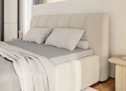 Rám postele i čelo jsou čalouněné, na výplň byla použita kvalitní PUR pěna.