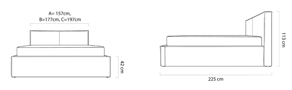 Rám postele i čelo jsou čalouněné, na výplň byla použita kvalitní PUR pěna.