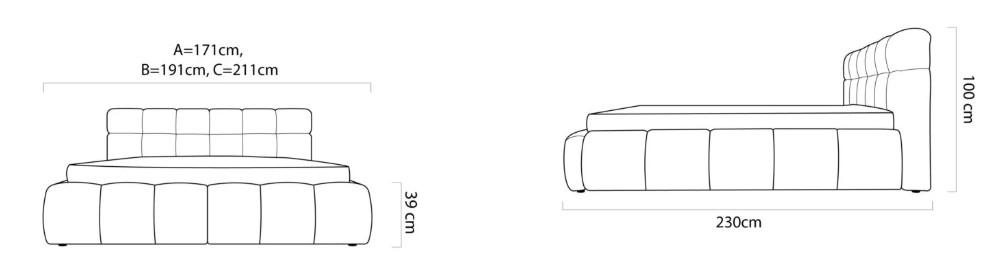 Rám postele i čelo jsou čalouněné, na výplň byla použita kvalitní PUR pěna.