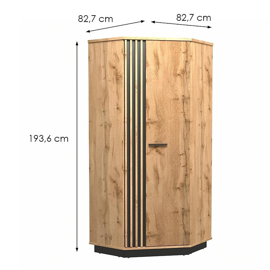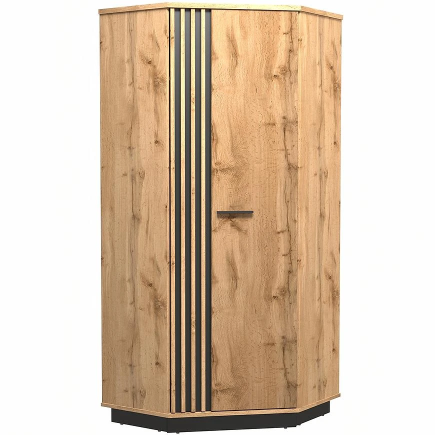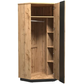 Rohová šatní skříň Lamelo LA29 - dub Wotan + černý mat