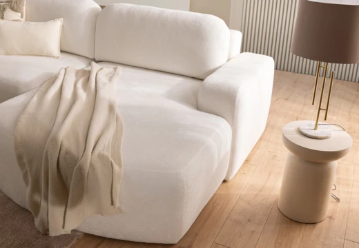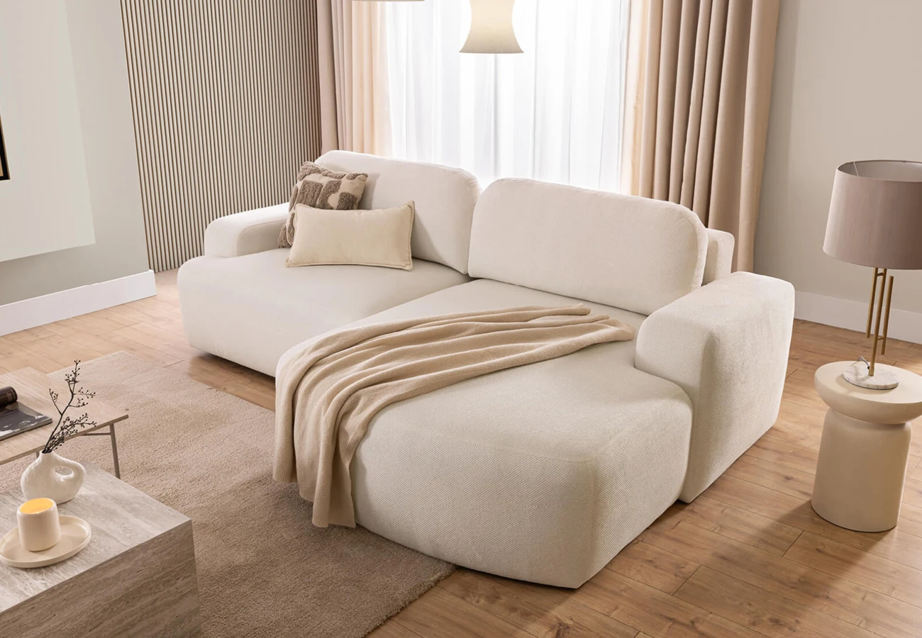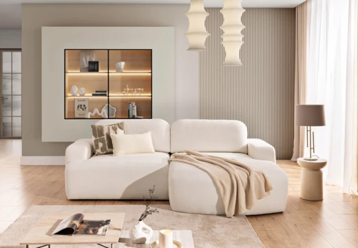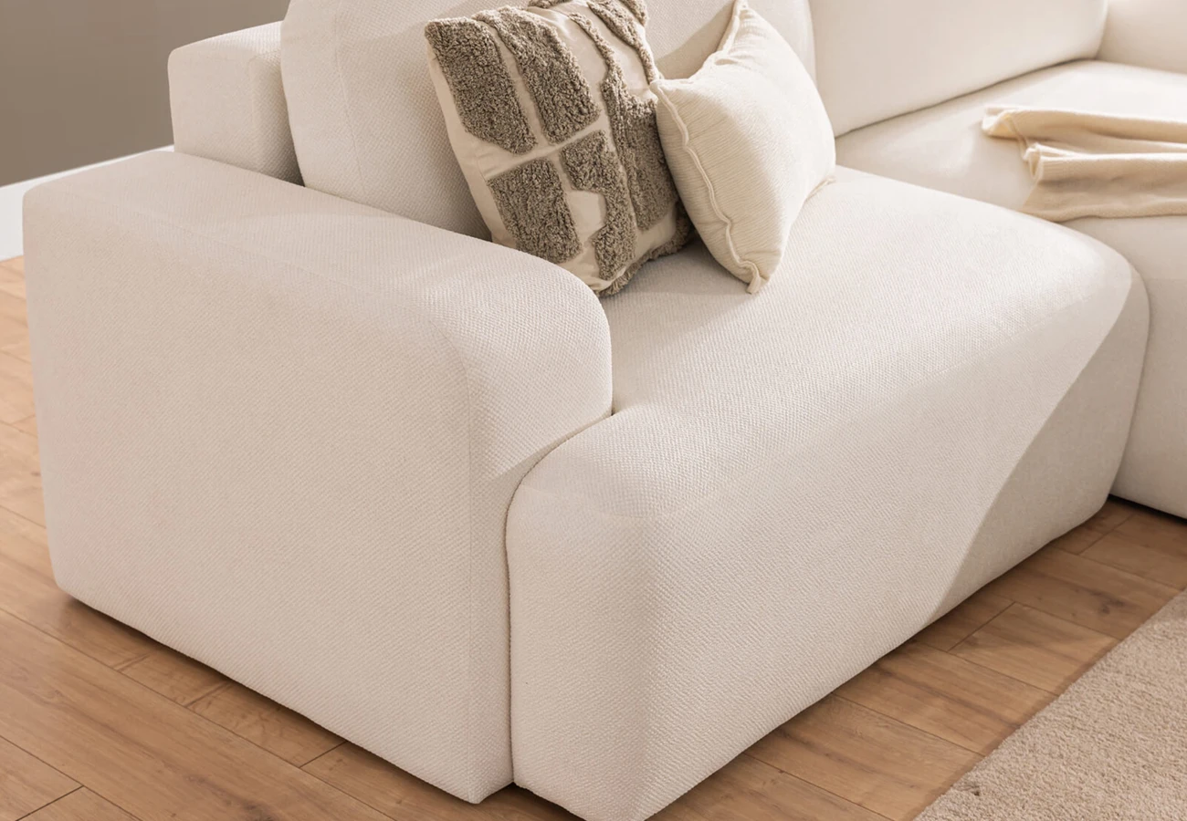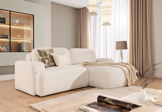 Rohová sedací souprava do L v moderním minimalistickém stylu.