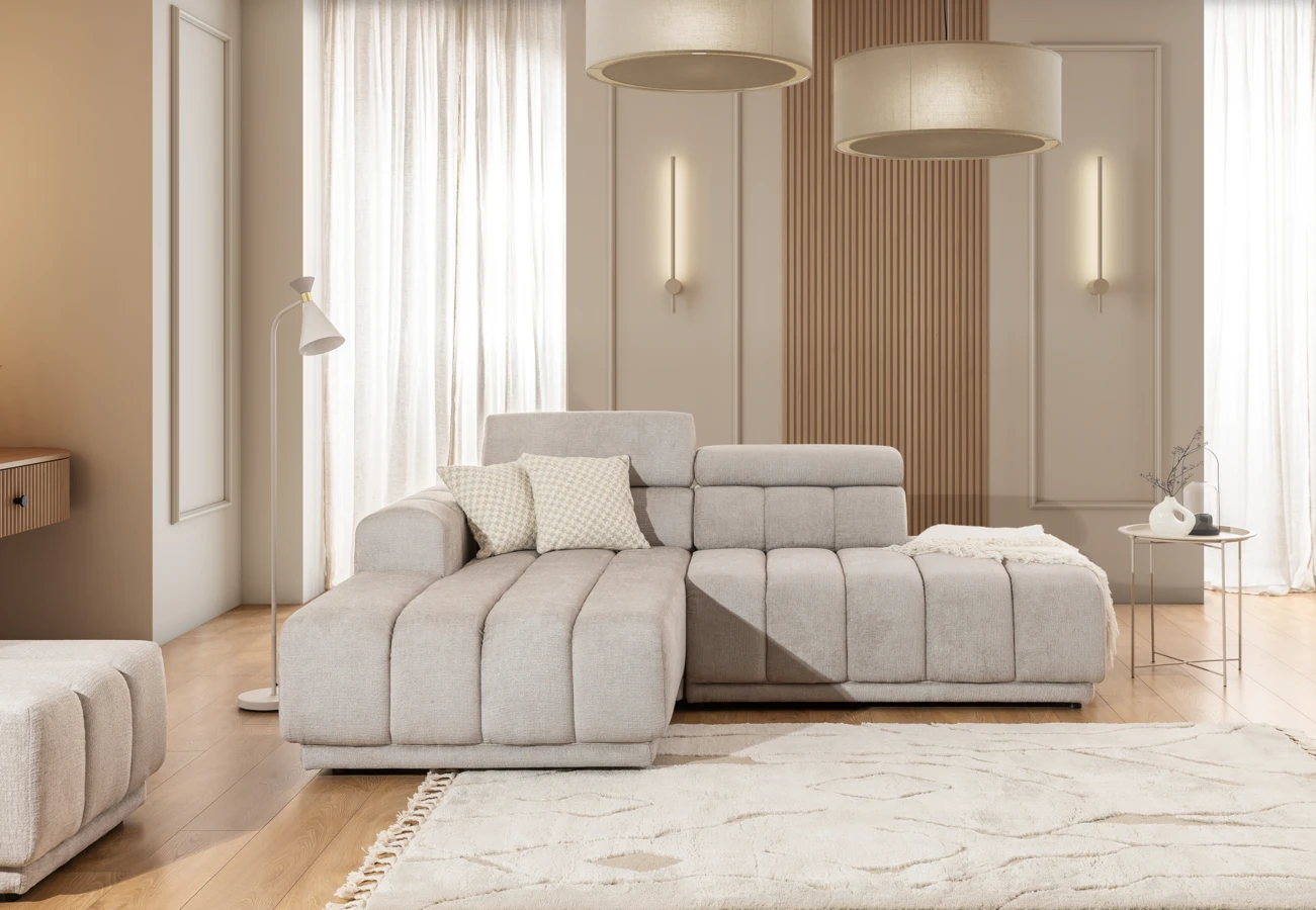 Modulová sedací souprava Augusto v sobě spojuje výrazný moderní styl s funkcemi, které oceníte každý den. Její charakteristické vertikální prošívání a robustní silueta dodávají interiéru eleganci, zatímco praktické detaily a kvalitní materiály se postarají o váš komfort. Pod měkkými a hlubokými sedáky se ukrývá kombinace vysoce elastické PUR pěny a vlnitých pružin faliste, která zaručuje dokonalé pohodlí při každém posezení. Pochází z modulové kolekce, kde si můžete sestavit sedačku z jednotlivých modulů a plně ji tak přizpůsobit potřebám interiéru.