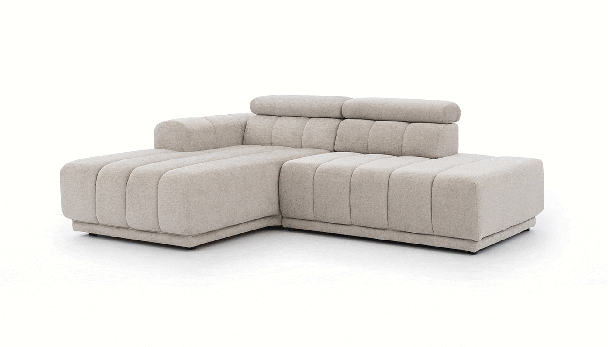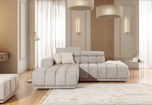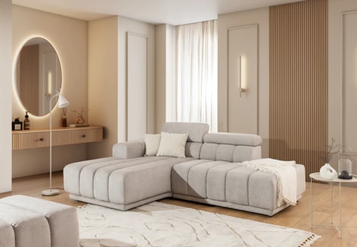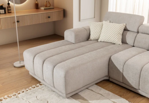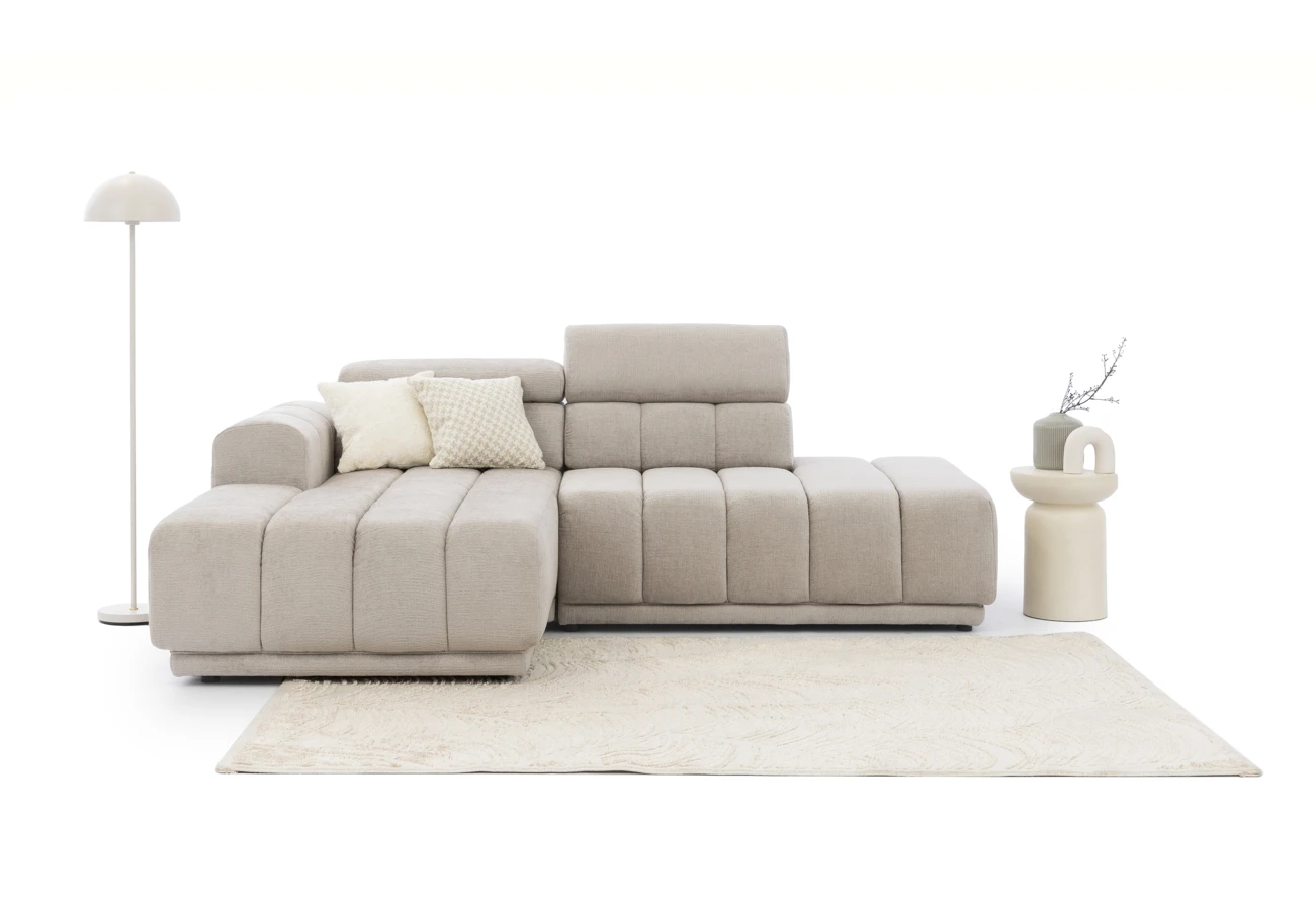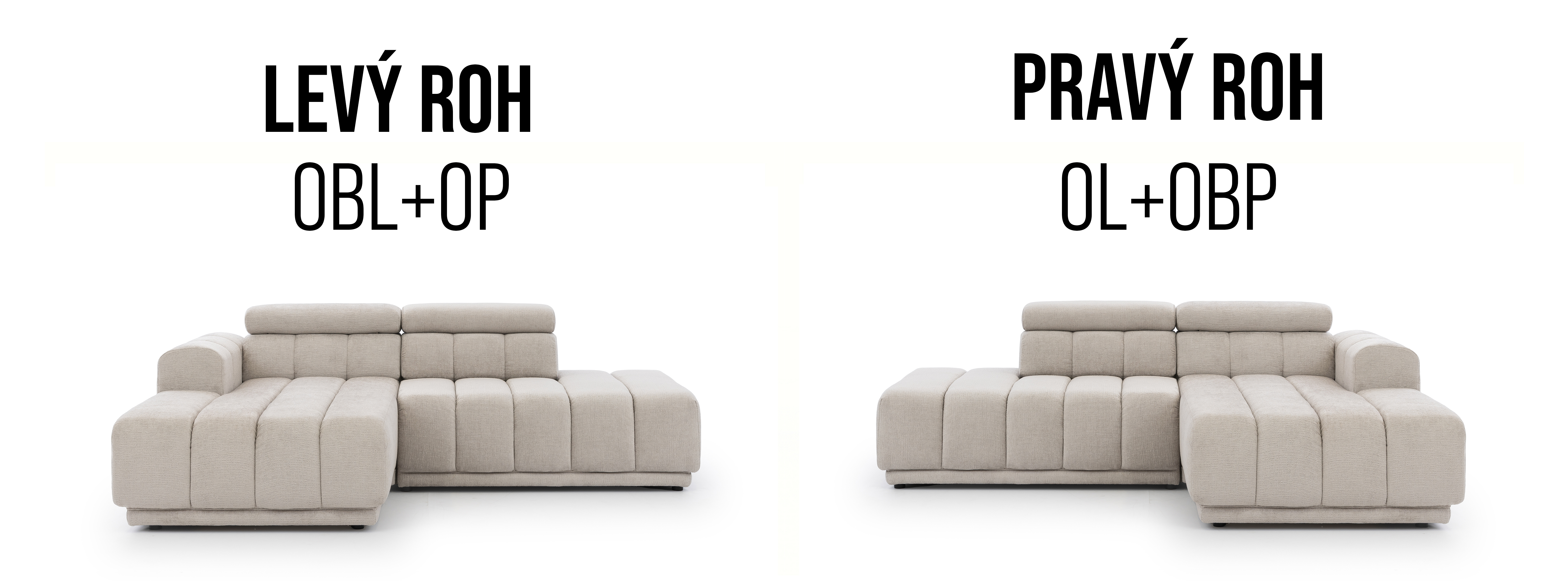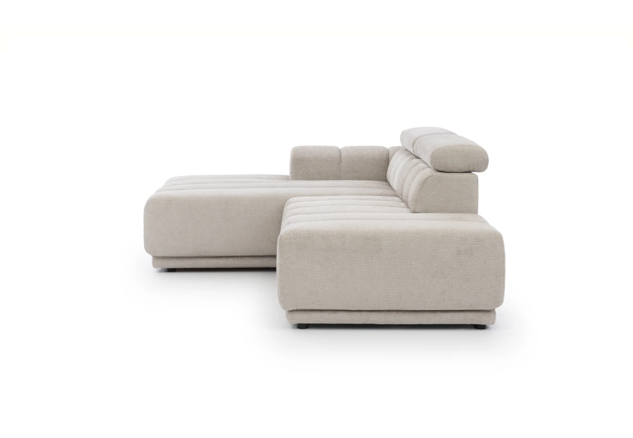 Modulová sedačka do L s polohovatelnými záhlavníky.