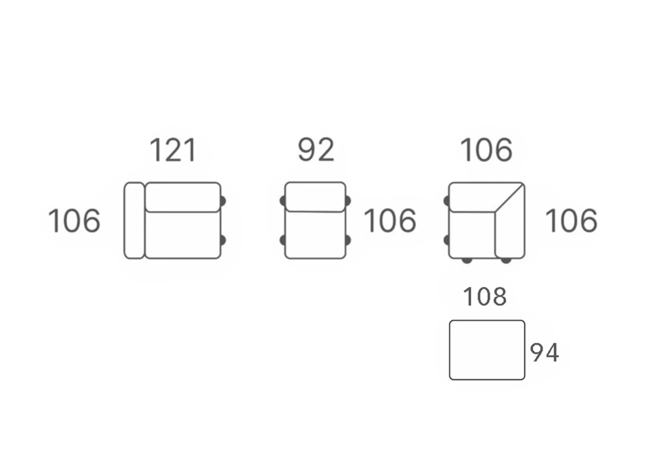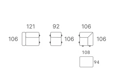 Rohová sedací souprava Bozzi S1+S1+E+PUF