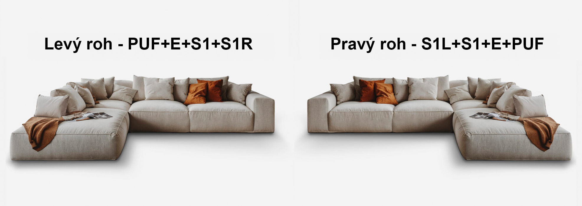 Rohová sedací souprava Bozzi S1R+S1+E+PUF