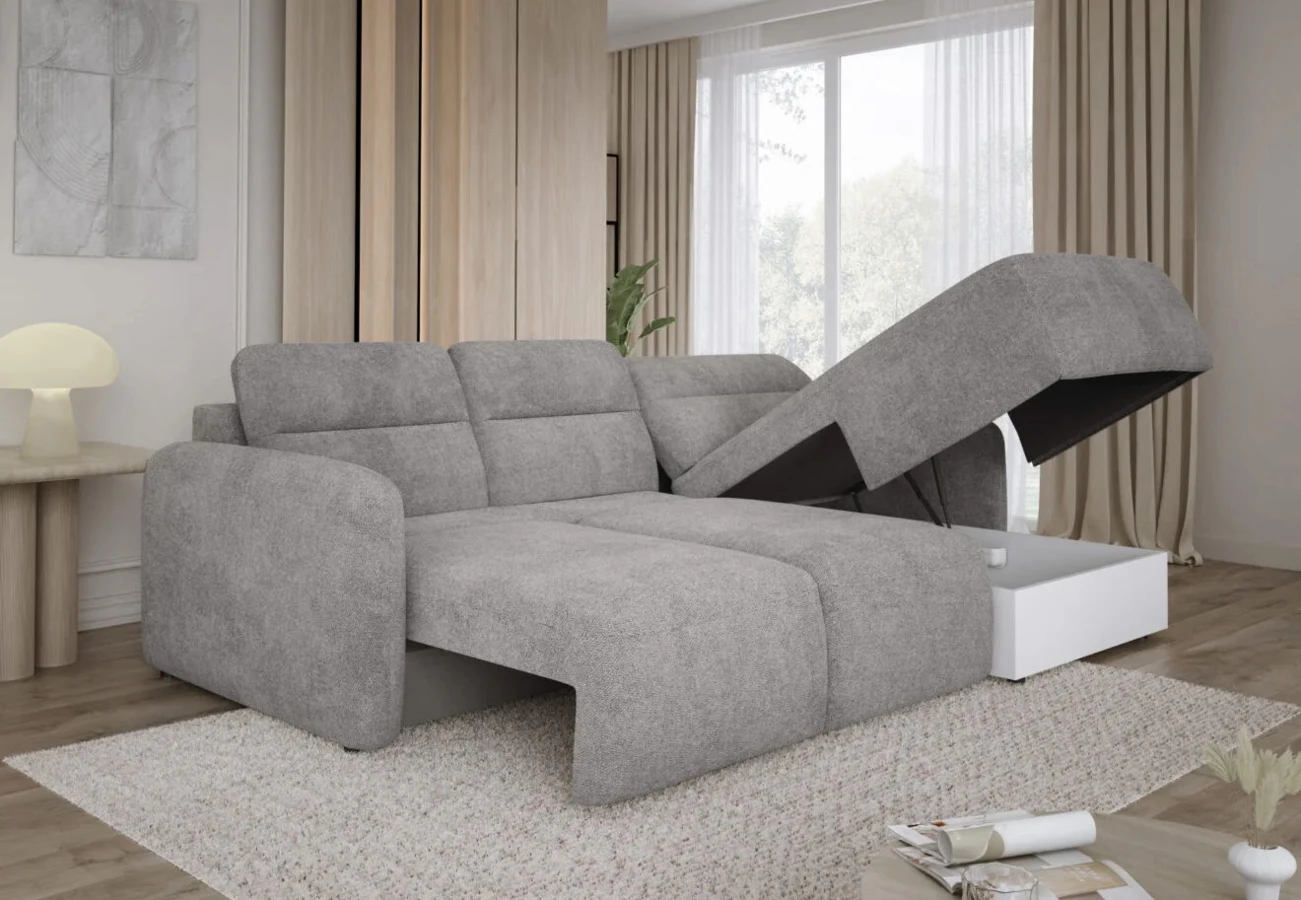 Rohová sedačka Calvano zaujme moderním designem s jemnými liniemi a příjemně měkkým čalouněním, které přímo zve k odpočinku po náročném dni. Její harmonické proporce působí v interiéru klidným a útulným dojmem, a přitom nabízejí maximální komfort sezení pro celou rodinu. Ergonomicky tvarované opěradla a dobře polstrované sedáky zajistí pohodlí při sledování filmů, společenských chvílích i lenošení s knihou. Praktická rozkládací funkce na spaní navíc promění sedačku během okamžiku v pohodlné lůžko pro hosty.