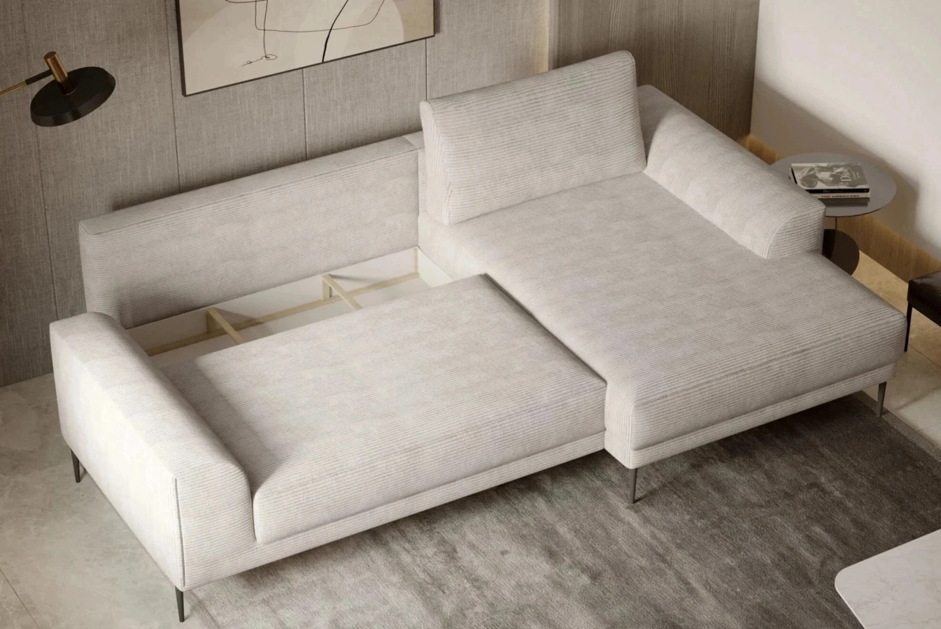 Nechybí ani praktický úložný prostor, ukrytý v sedací ploše.