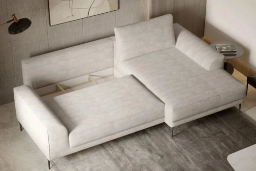 Rozkládací rohová sedačka do L nabízí jedinečné pohodlí díky spojení pružin faliste a PUR pěny.