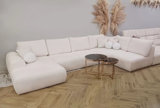 Rohová sedací souprava do U v moderním minimalistickém stylu.