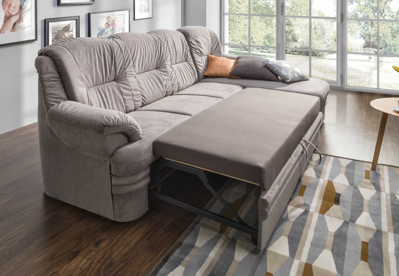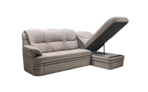 Sedací souprava je rozkládací, má úložný prostor.