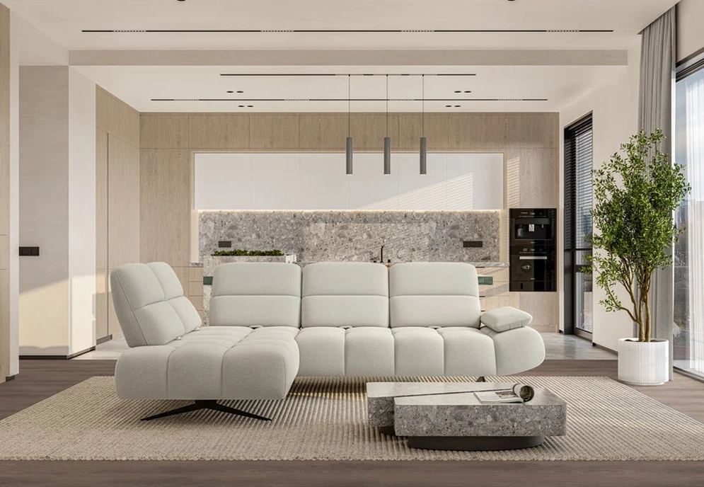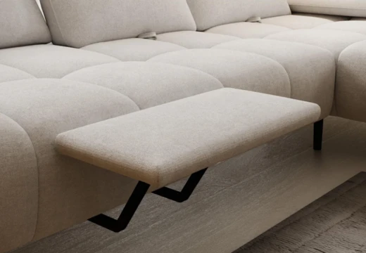 Rohová sedačka Falcao vyniká moderním designem s jemným prošíváním a čistými liniemi, které dodávají interiéru nadčasový a elegantní charakter. Je navržena s důrazem na maximální komfort. Nabízí posuvná opěradla, polohovatelnou područku a možnost elektricky vysouvatelné podnožky, díky které si snadno přizpůsobíte ideální polohu pro odpočinek. Kvalitní zpracování doplňuje pohodlné sezení s pružinami faliste a prvotřídní pěnou, která zajišťuje optimální oporu a dlouhodobou životnost. Falcao je tak ideální volbou pro ty, kteří hledají designovou sedačku s pokročilými funkcemi a komfortem na nejvyšší úrovni.