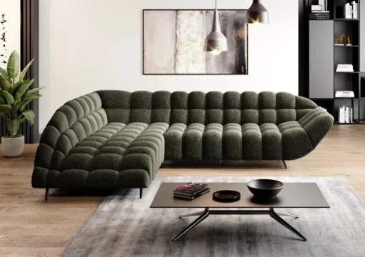 Luxusní rohová sedačka do L s originálními tvary a prošíváním.