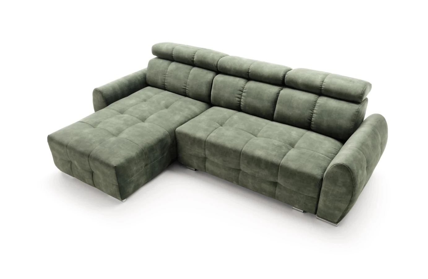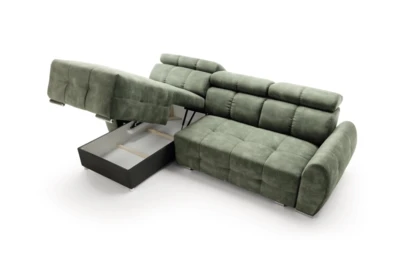Luxusní rozkládací sedačka do L s úložným prostorem a stylovým prošíváním.