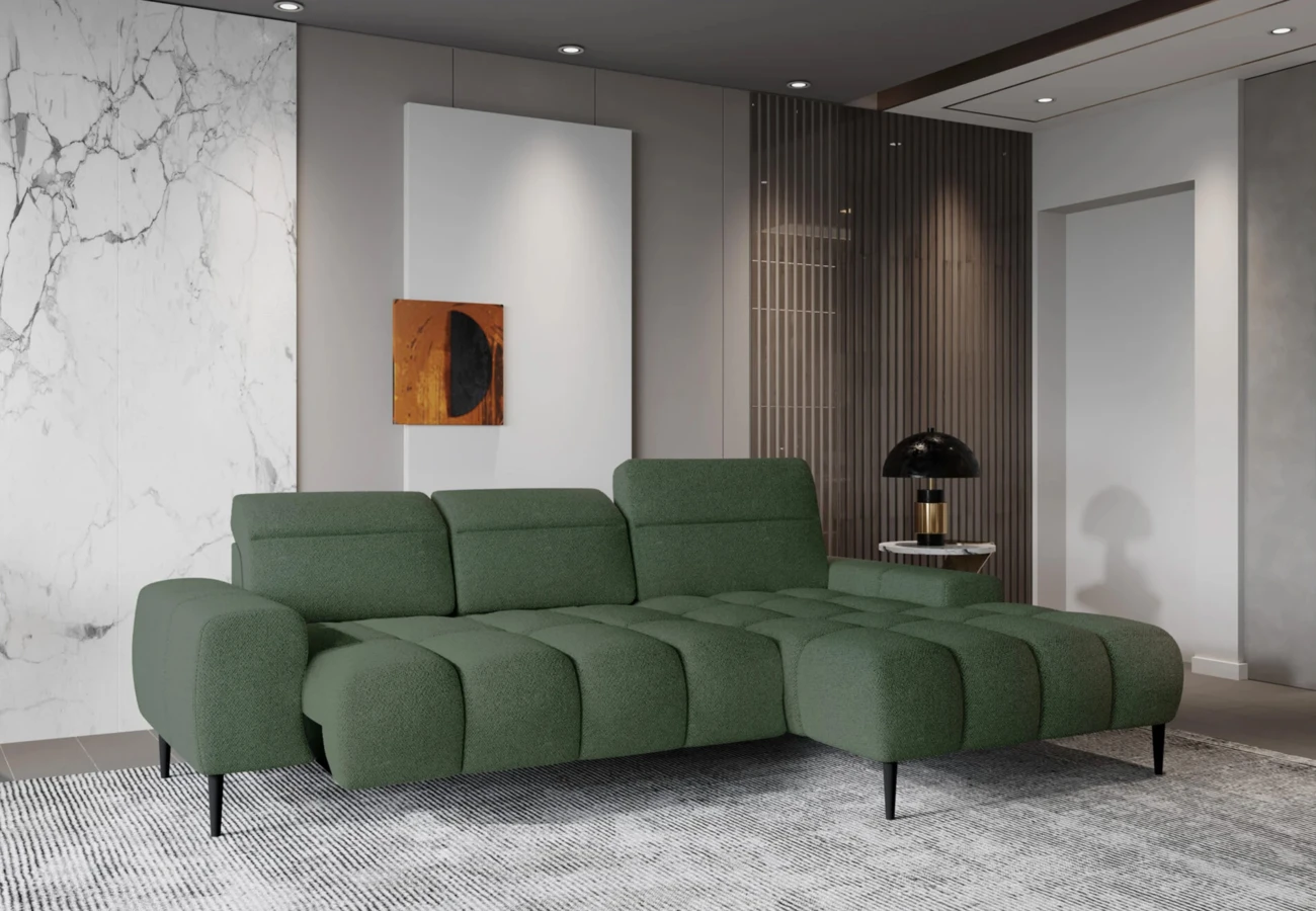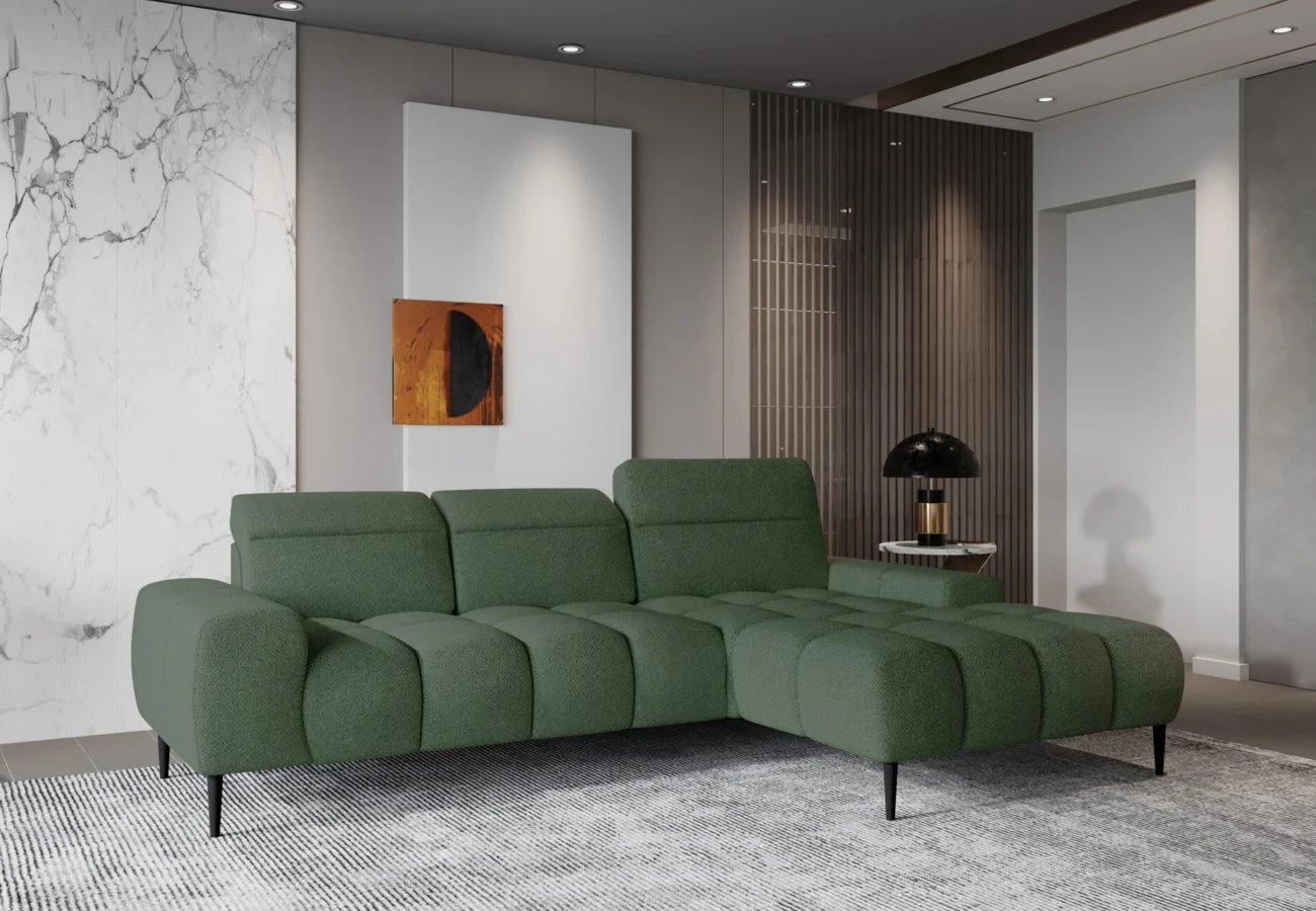 Luxusní rohová sedačka Giano představuje spojení moderního designu a nejnovějších funkcí, které posouvají komfort každodenního sezení na vyšší úroveň. Čisté linie doplněné vysokými nožkami dodávají sedačce lehký a vzdušný vzhled, díky kterému skvěle zapadne do současných interiérů. Maximální pohodlí zajišťuje elektricky nastavitelná hloubka sedu, spolu s polohovatelnými záhlavníky, které umožňují přizpůsobit si ideální relaxační pozici. Kvalitní pěnová výplň v kombinaci s pružinami faliste zaručuje dlouhodobý komfort i odolnost při každodenním používání. Giano je ideální volbou pro ty, kteří hledají designovou sedačku s pokročilými funkcemi a maximálním pohodlím bez kompromisů.