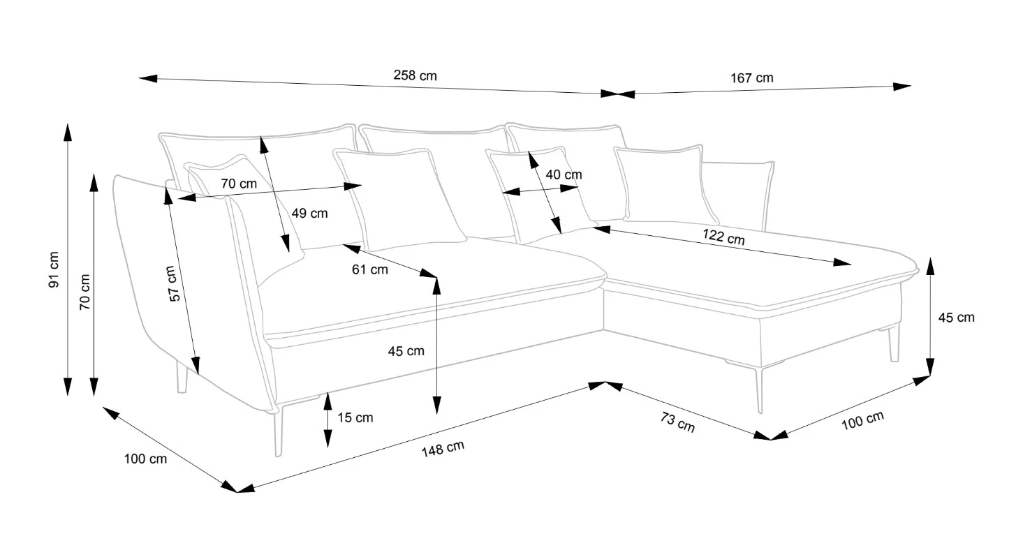 Uvnitř sedací části se nachází vlnité pružiny a kvalitní PUR pěna.
