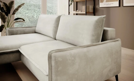 Rohová sedací souprava Glossy i přes své malé rozměry překvapí množstvím užitečných funkcí a prostorností. Výrobce u tohoto modelu kladl také důraz na minimalismus, eleganci a pohodlí. Její praktičnost spočívá především v možnosti jednoduchého rozložení spací plochy, v zabudovaném úložném prostoru a vysokých nožkách, které zajistí snadný úklid. Jedinečný komfort poskytnou kvalitní pružiny faliste ve spojení s elastickou PUR pěnou.