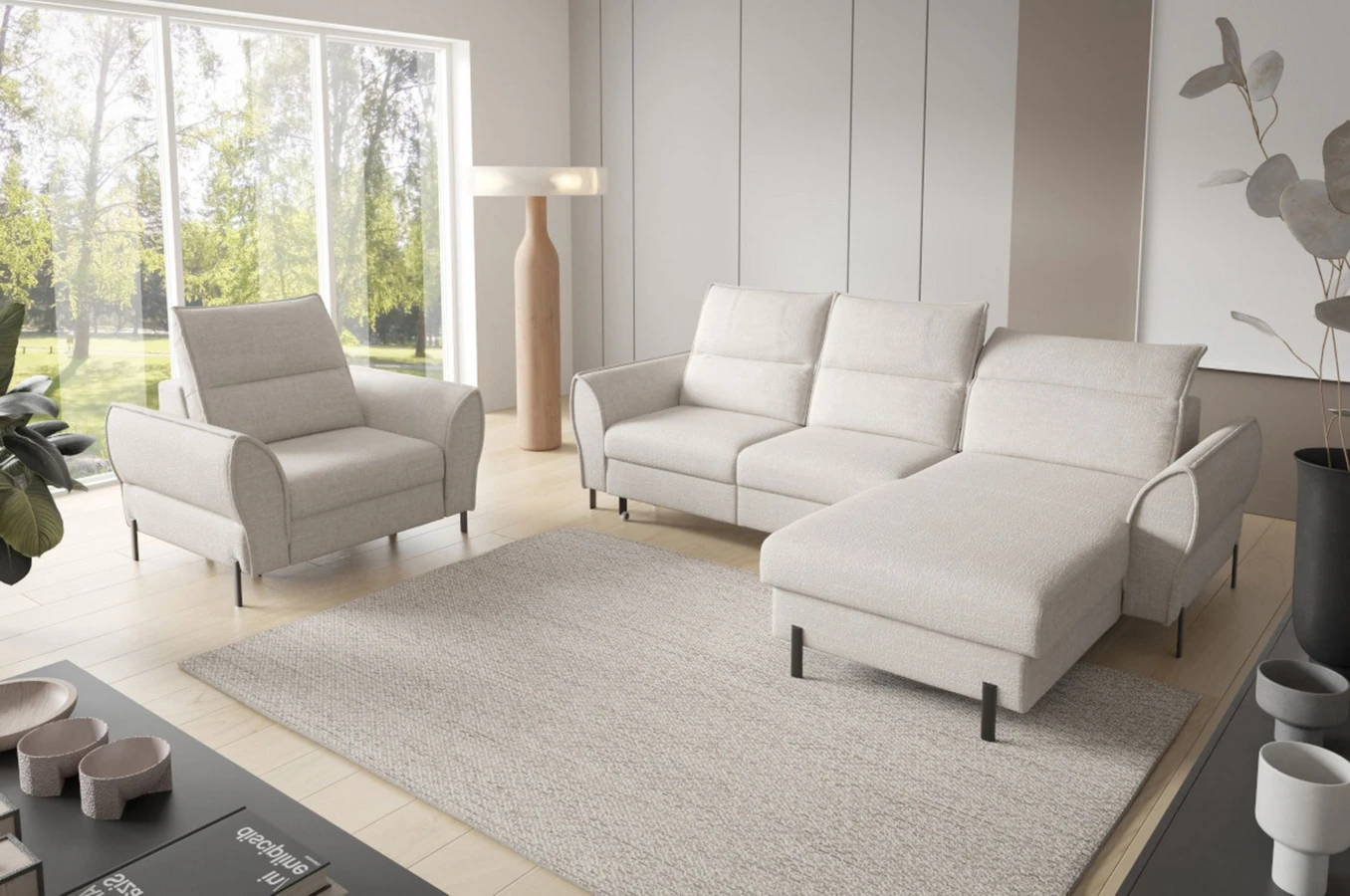 Luxusní modulová sedačka do L s křeslem, která vytvoří útulné útočiště v každém obýváku.