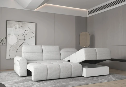 Disponuje elektrickým rozkládacím mechanismem pro potřeby příležitostného přespání.