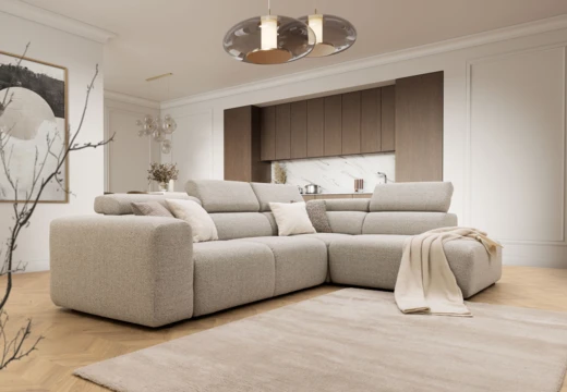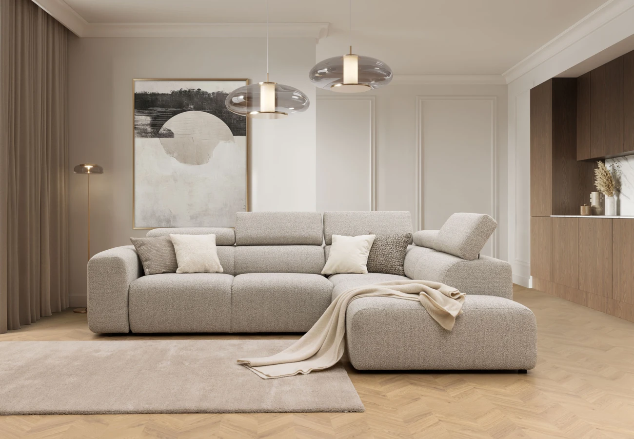 Rohová sedací souprava do L v moderním minimalistickém stylu.