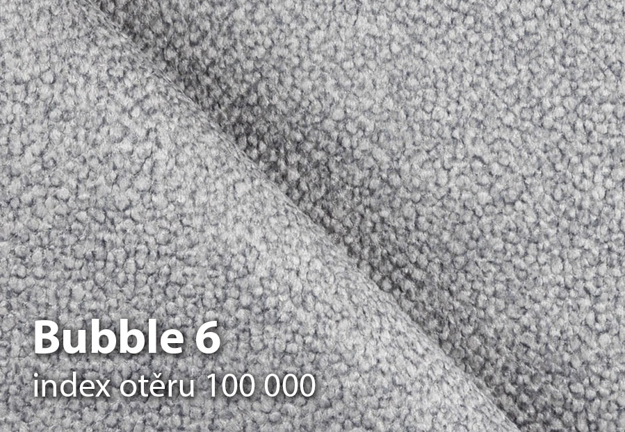 Sedačka je vyrobena ve variantě pravý roh a potah tvoří tkanina Bubble 6 v šedé barvě s výraznou strukturou.