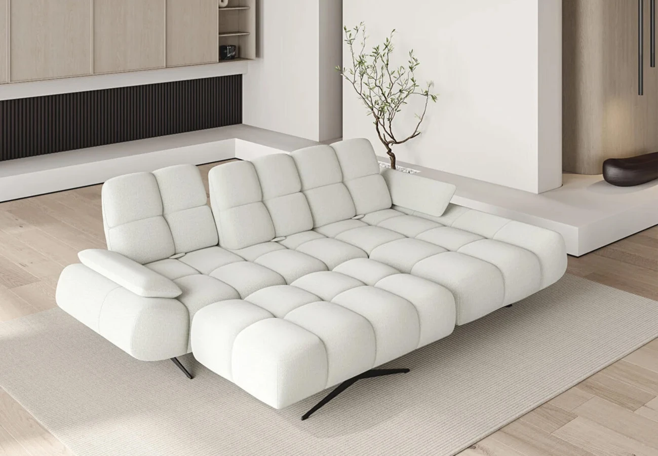 Sedací souprava Prado představuje moderní design v kombinaci s mimořádnou variabilitou a komfortem, který si přizpůsobíte přesně podle sebe. Každé opěradlo je posuvné vpřed i vzad, takže si snadno nastavíte ideální hloubku sedu - od vzpřímeného posezení až po hluboký relax. Maximální pohodlí podtrhují také polohovatelné područky, které zvyšují komfort při odpočinku i ležení. Elegantní linie, precizní zpracování a promyšlené detaily dělají z modelu Prado skutečně výjimečný kus nábytku, který se stane dominantou moderního obývacího pokoje.