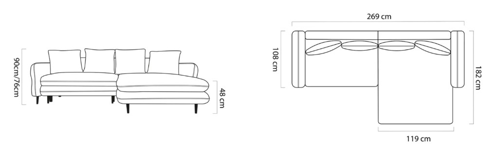 Vysoké nožky dodávají sedací soupravě vzdušnost a lehkost