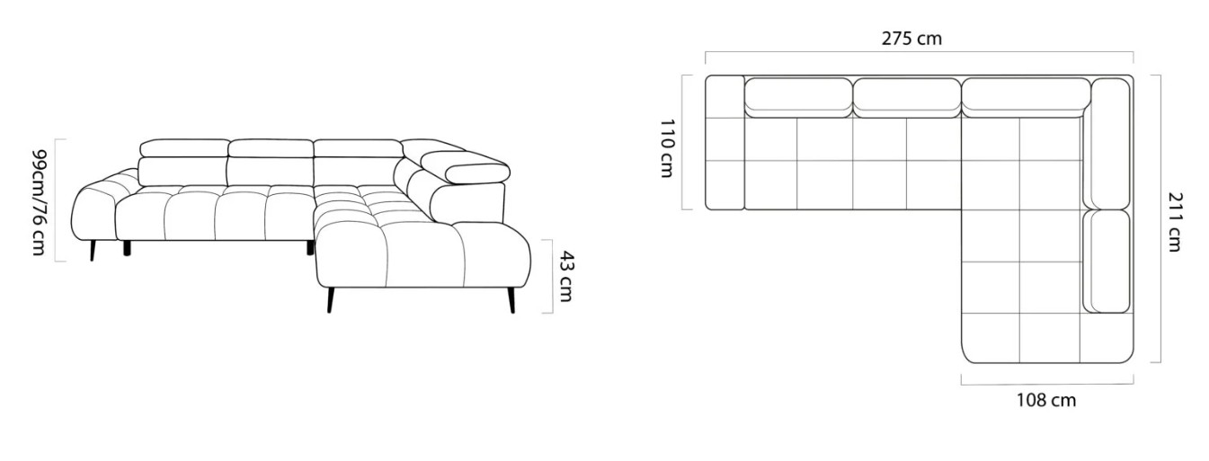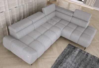 Rohová sedací souprava Santo vyniká elegantním a progresivním designem, který je v souladu s nejnovějšími trendy v interiérovém designu. Elektrický výsuv sedadla a polohovatelné záhlavníky nabízí pohodlí a variabilitu, zatímco hluboké prošívání dodává sedací soupravě jedinečný charakter. Sedačka stojí na vysokých nožkách, které jí dodávají lehkost a podtrhují její styl.