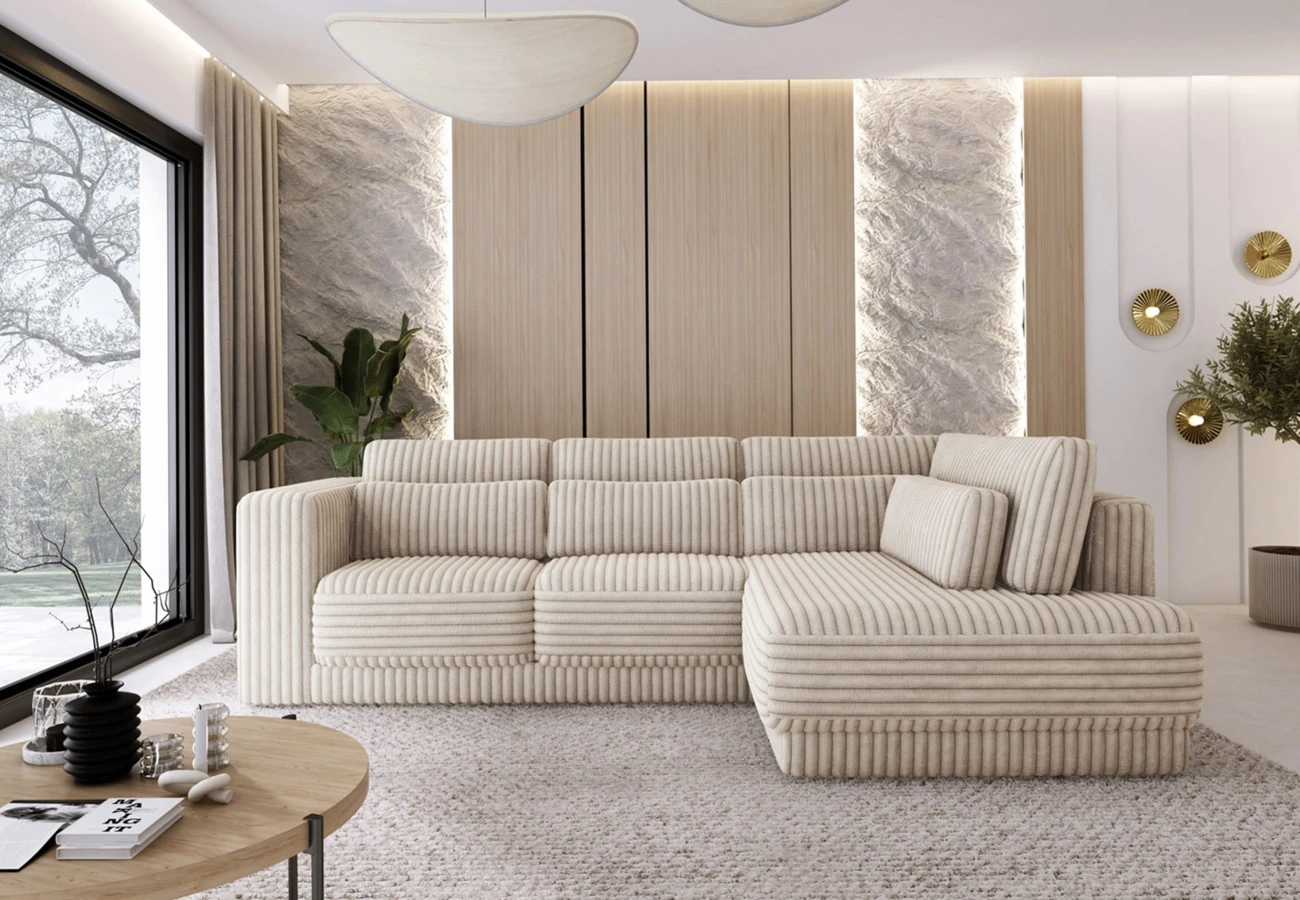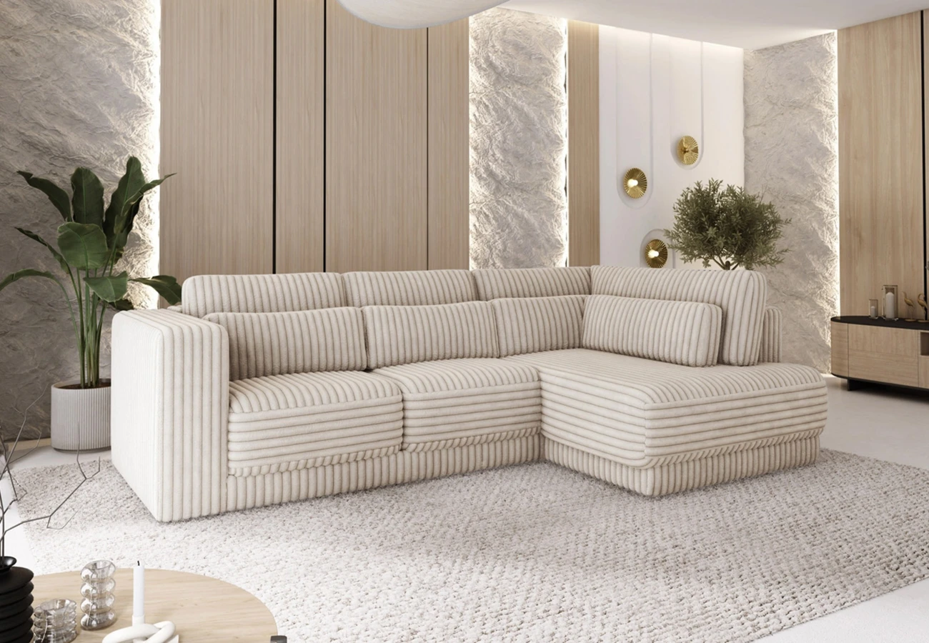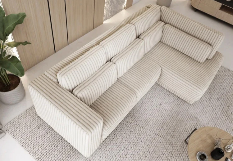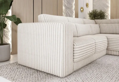 Na ilustračním obrázku je sedačka v plyšové látce s výrazným manšestrovým vzorem,