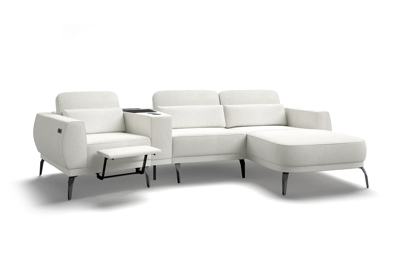 Sedačka je také vybavena barem s nabíječkou telefonu a skrytým prostorem na uložení Vašich drobností.